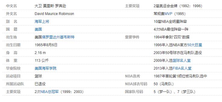大卫-罗宾逊个人详细资料简介: