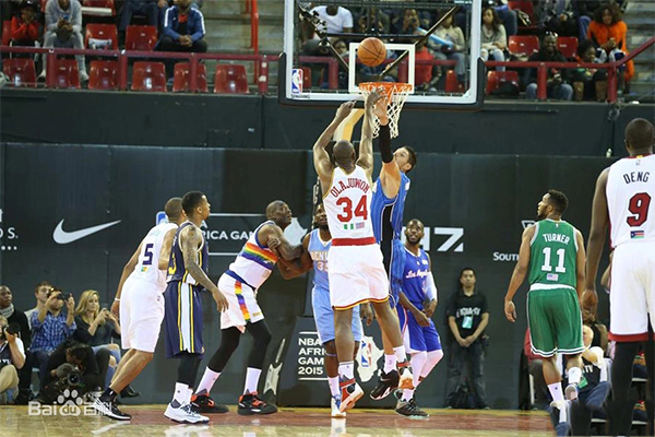 2015年8月1日,52岁的奥拉朱旺身穿34号球衣出现在NBA非洲赛中,他宝刀未老,得到2分2篮板1盖帽。