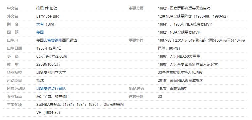 拉里-伯德 个人详细资料简介: