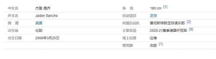 杰登-桑乔(Jadon Sancho),2000年3月25日出生于英国伦敦,英国男子职业足球运动员,司职右边锋,亦可胜任左边锋,效力于英超的曼彻斯特联足球俱乐部。