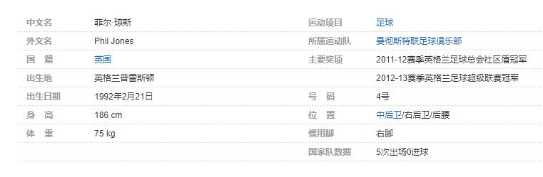 菲尔·琼斯(Phil Jones ),1992年2月21日出生于英格兰普雷斯顿,英格兰足球运动员,场上司职后卫,效力于曼彻斯特联足球俱乐部。个人简介: