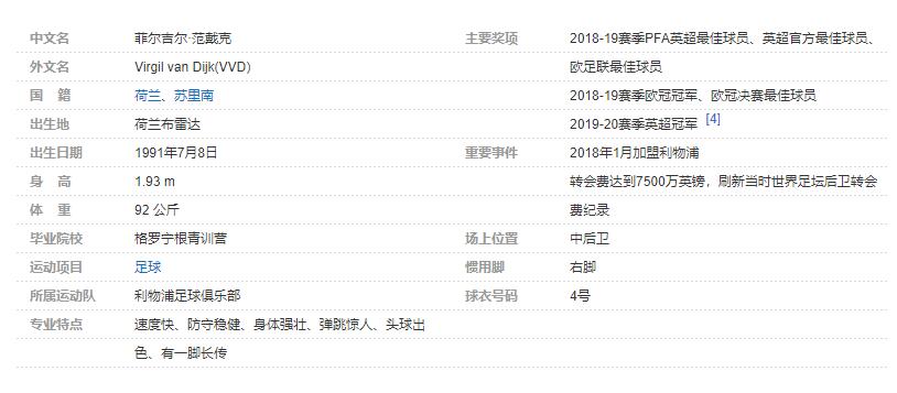 | 2018-01-01 | 转会 | 8450万欧元 | 南安普顿 | 利物浦 |