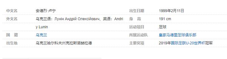 安德烈·卢宁是乌克兰的一名潜力新星,司职门将。