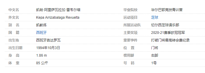 凯帕·阿里萨瓦拉加(Kepa Arrizabalaga),全名凯帕·阿里萨瓦拉加·雷韦尔塔(Kepa Arrizabalaga Revuelta),1994年10月3日出生于西班牙翁达罗瓦,西班牙足球运动员,司职门将,现效力于英格兰足球超级联赛的切尔西足球俱乐部。个人简介