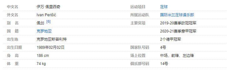 伊万·佩里西奇(Ivan Perisic),1989年2月2日出生于克罗地亚斯普利特,克罗地亚职业足球运动员,司职左前卫,亦可胜任左边锋和二前锋,现效力于意大利的国际米兰足球俱乐部 。个人简介