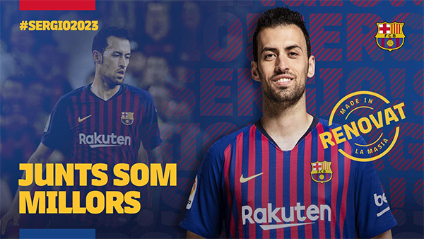 2015年2月26日,西甲豪门巴塞罗那在其官网上宣布与中场球员布斯克茨就续约达成一致,布斯克茨将与巴萨续约到2019年6月30日,同时附带有一年的续约条款。