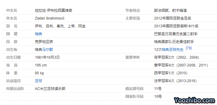 兹拉坦·伊布拉西莫维奇(Zlatan Ibrahimović),简称“伊布”,1981年10月3日出生于瑞典马尔默,瑞典职业足球运动员,司职前锋,现效力于AC米兰足球俱乐部。