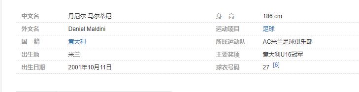 丹尼尔·马尔蒂尼(Daniel Maldini),生于2001年10月11日,意大利足球运动员,司职前锋,现效力于AC米兰足球俱乐部。个人简介