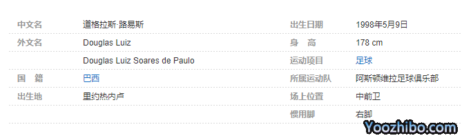 道格拉斯·路易斯(Douglas Luiz),1998年5月9日出生于里约热内卢,巴西足球运动员,场上司职中前卫,现效力于英格兰足球超级联赛的阿斯顿维拉足球俱乐部。
