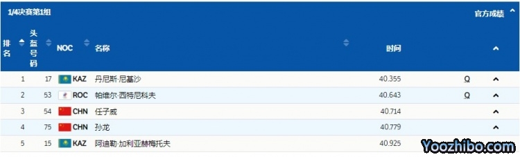 任子威和孙龙同在第1组,两人的成绩分列小组第3和第4,两人双双无缘晋级。