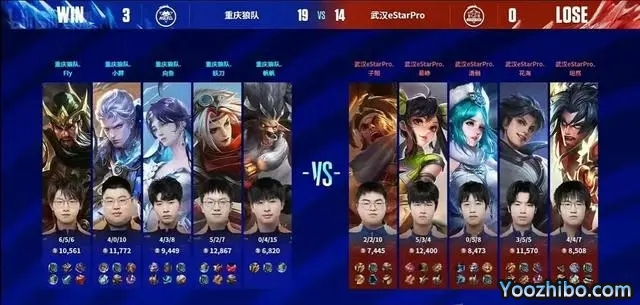 24直播网讯 北京时间03月25日,在KPL第三局比赛中,重庆狼队以3-0的比分碾压武汉eStar,拿下第二轮常规赛的第三个大场积分,目前重庆狼队已经坐稳S组第一,连续零封了佛山DRG、南京Hero久竞和武汉eStar。