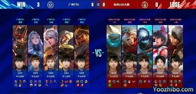 24直播网讯 北京时间03月12日,在KPL第三场比赛中,广州TTG以3-0的比分碾压杭州LGD大鹅,拿下第二轮常规赛的首胜。