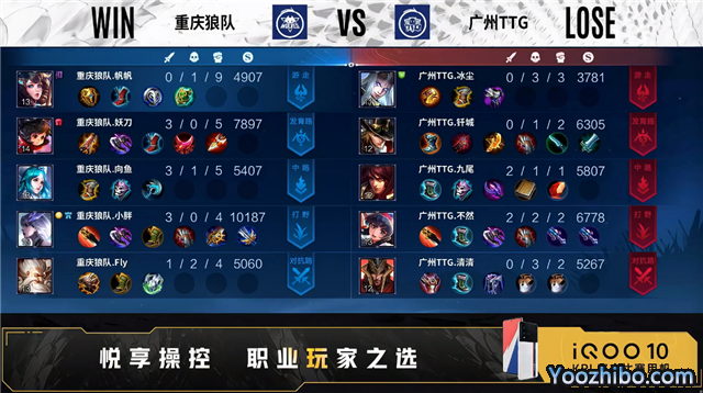 重庆狼队选用:老夫子、镜、王昭君、李元芳、大乔