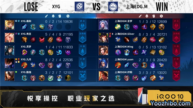 开局双方正常抢线。51秒野区上海EDG.M击杀猪八戒,拿下一血,打出0换2。2分12秒XYG拿下暴君。2分49秒发育路XYG击杀马可波罗,野区上海EDG.M击杀张飞,关羽二连击破,打出1换2。4分33秒XYG摧毁敌方发育路外塔。5分11秒上海EDG.M摧毁敌方发育路外塔,XYG拿下主宰,摧毁敌方对抗路外塔。6分56秒XYG拿下暴君,击杀牛魔,摧毁敌方中路外塔,上海EDG.M击杀宫本武藏,打出1换2。7分59秒上海EDG.M摧毁敌方中路外塔、对抗路外塔。9分35秒上海EDG.M拿下主宰。10分42秒XYG拿下暗影主宰,上海EDG.M拿下暗影暴君。11分54秒上海EDG.M摧毁敌方发育路二塔。13分33秒野区上海EDG.M击杀张飞,摧毁敌方对抗路二塔,14分59秒中路XYG击杀沈梦溪,双方打出2换2。16分24秒XYG拿下暗影主宰,击杀关羽,上海EDG.M拿下暗影暴君。17分06秒XYG摧毁敌方中路外塔、二塔。18分57秒XYG摧毁敌方发育路二塔、对抗路二塔。21分27秒中路XYG击杀马可波罗,打出0换2,摧毁敌方中路高地、发育路高地,摧毁水晶拿下比赛。