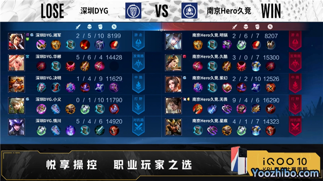 开局中路南京Hero久竞三人抢线。1分26秒中路南京Hero久竞击杀蒙犽,拿下一血。3分02秒深圳DYG拿下主宰,南京Hero久竞拿下暴君。3分58秒对抗路深圳DYG击杀蒙恬,发育路击杀李元芳,打出0换2。5分49秒深圳DYG摧毁敌方对抗路外塔,河道团战双方打出1换1。7分24秒深圳DYG拿下主宰,摧毁敌方发育路外塔。8分32秒发育路南京Hero久竞击杀蒙犽,拿下暴君。9分13秒发育路南京Hero久竞击杀猪八戒,双方打出2换2。10分44秒深圳DYG拿下暗影暴君,南京Hero久竞摧毁敌方对抗路外塔。11分24秒中路南京Hero久竞击杀猪八戒,野区击杀澜,打出0换2,摧毁敌方中路外塔,拿下暗影主宰。12分25秒野区南京Hero久竞击杀蒙犽,摧毁敌方发育路外塔。13分32秒南京Hero久竞摧毁敌方中路二塔,深圳DYG澜二连击破,摧毁敌方中路外塔。14分34秒深圳DYG拿下暗影暴君,摧毁敌方对抗路外塔。15分34秒深圳DYG摧毁敌方发育路外塔。17分18秒野区南京Hero久竞击杀上官婉儿,拿下暗影主宰,摧毁敌方中路高地,打出0换5,团灭对手摧毁水晶拿下比赛。