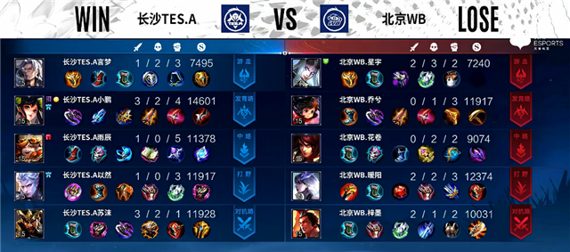 长沙TES.A禁用: 盾山、阿古朵、弈星、西施