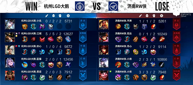 杭州LGD大鹅禁用:盾山、镜、嬴政、不知火舞