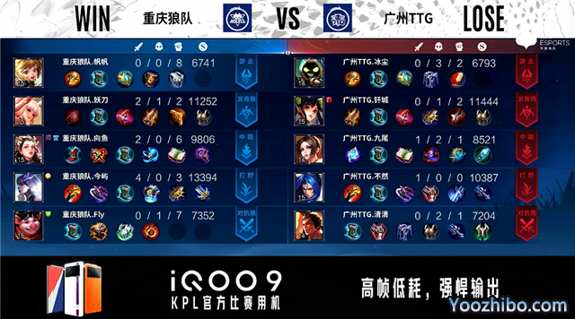 开局广州TTG中路抢线,50秒两队同时入侵对方野区皆反掉蓝BUFF。2分29秒广州TTG发育路击杀公孙离拿到一血。4分13秒广州TTG拿下主宰。4分36秒重庆狼队摧毁敌方中路外塔。6分03秒中路团战广州TTG击杀猪八戒。6分43秒广州TTG拿下暴君。9分44秒重庆狼队拿下暗影主宰。10分22秒重庆狼队拿下暗影暴君。11分55秒重庆狼队对抗路打出0换2并摧毁敌方对抗路二塔。12分20秒重庆狼队对抗路打出0换2并摧毁敌方对抗路高地塔。13分20秒重庆狼队野区击杀太乙真人。14分05秒重庆狼队摧毁敌方中路高地塔。16分15秒重庆狼队强点水晶拿下比赛。