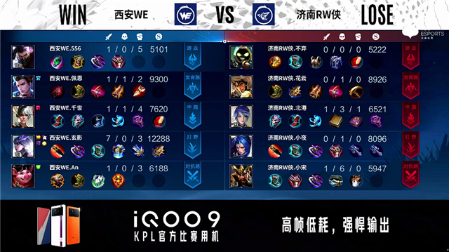 54秒,西安WE嬴政击杀弈星拿下一血。1分10秒,西安WE兰陵王击杀关羽。1分53秒,西安WE镜击杀弈星。2分08秒,西安WE控下先知主宰,随后济南RW侠控下暴君。3分钟,西安WE猪八戒击杀关羽。3分36秒,西安WE上路击杀关羽。5分52秒,西安WE破掉济南RW侠上二塔。6分21秒,西安WE控下先知主宰。7分29秒,西安WE破掉济南RW侠下二塔,随后团战济南RW侠打出1换2。7分58秒,济南RW侠控下暴君。8分47秒,西安WE破掉济南RW侠中一塔。10分17秒,西安WE控下暗影暴君。10分47秒,西安WE控下暗影主宰。11分27秒,西安WE下路打出0换2。11分53秒,西安WE破掉济南RW侠中二塔并击杀成吉思汗。12分12秒,西安WE破掉济南RW侠下、中高地。12分32秒,西安WE破掉济南RW侠上高地并打出0换2。12分42秒,西安WE摧毁济南RW侠水晶,让二追三赢下比赛!