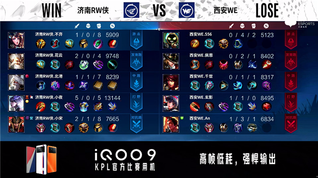 2分10秒,济南RW侠控下先知主宰。3分48秒,济南RW侠团战打出0换2。4分16秒,西安WE破掉济南RW侠上一塔。4分45秒,济南RW侠控下暴君。5分21秒,济南RW侠镜下路单杀娜可露露。5分49秒,济南RW侠蒙恬下路越塔击杀吕布。6分20秒,济南RW侠破掉西安WE上一塔。8分07秒,济南RW侠破掉西安WE下二塔。8分36秒,双方团战1换1。10分钟,济南RW侠中路越塔击杀太乙真人,随后破掉西安WE中一塔。10分34秒,济南RW侠破掉西安WE中二塔,随后镜控下暗影主宰。10分55秒,济南RW侠破掉西安WE上高地,西安WE击杀姜子牙。11分55秒,济南RW侠击杀太乙真人。13分04秒,济南RW侠控下暗影暴君。13分30秒,双方团,济南RW侠打出0换4,镜拿下三杀。13分47秒,济南RW侠下路一波摧毁西安WE水晶再下一城。