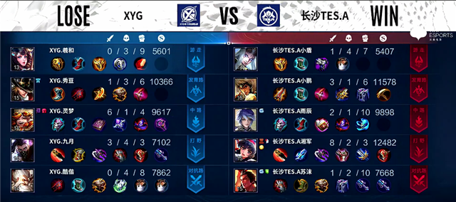 长沙TES.A禁用: 澜、大乔、夏侯惇、周瑜
