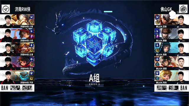 2分11秒,佛山GK控下暴君,济南RW侠控下先知主宰。5分10秒,佛山GK破掉济南RW侠上一塔。6分27秒,济南RW侠控下先知主宰,随后团战佛山GK虞姬击杀橘右京拿下一血。7分10秒,佛山GK控下暴君,随后队伍破掉济南RW侠下一塔。9分40秒,济南RW侠破掉佛山GK下二塔。10分47秒,济南RW侠控下暗影主宰,随后佛山GK控下暗影暴君。11分52秒,济南RW侠强推掉佛山GK中一塔。12分05秒,佛山GK野区击杀公孙离,随后破掉济南RW侠下二塔。13分48秒,佛山GK强破掉济南RW侠上高地。14分36秒,济南RW侠控下暗影主宰。15分53秒,济南RW侠公孙离中路反打击杀裴擒虎。16分42秒,济南RW侠破掉佛山GK中二塔。19分04秒,双方破掉对方下高地。19分31秒,济南RW侠控下暗影主宰。21分05秒,龙王团,佛山GK打出1换2。21分50秒,佛山GK控下风暴龙王,随后破掉济南RW侠中一塔。22分51秒,佛山GK破掉济南RW侠中二塔。24分钟,济南RW侠击杀王昭君,随后再击杀裴擒虎。24分50秒,济南RW侠击杀虞姬并破掉佛山GK中高地。25分08秒,济南RW侠摧毁佛山GK水晶先下一城。