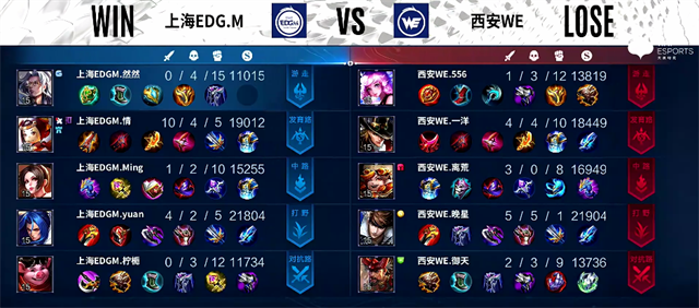 上海EDG.M禁用:公孙离、大乔、孙膑、虞姬