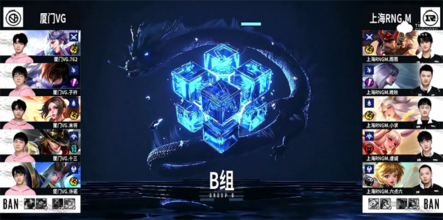 双方和平开局。2分31秒上海RNG.M强攻下路一塔,公孙离拿下一血,双方1换1。3分40秒镜拿下暴君。4分10秒野区团战,厦门VG打出1换2。4分40秒公孙离推掉中路一塔。5分钟澜拿下主宰。6分17秒上海RNG.M下路一塔被破。8分钟野区团战,厦门VG打出0换2。8分20秒中路团战,公孙离拿下双杀。9分17秒镜拿下暴君。10分22秒公孙离拿下暴君。12分钟中路团战,上海RNG.M打出0换2。13分钟镜拿下主宰。14分钟上海RNG.M推掉上路和中路高地塔。14分14秒上海RNG.M推掉水晶率先拿下一分。