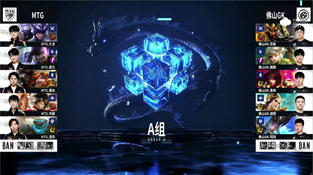 2分29秒,佛山GK控下先知主宰,随后MTG控下暴君。5分22秒,MTG吕布上路击杀澜拿下一血。5分27秒,孙膑下路击杀鲁班大师,随后佛山GK破掉MTG下一塔。6分48秒,MTG上路越塔击杀蒙犽,随后破掉佛山GK上一塔。11分25秒,佛山GK控下暗影暴君,随后团战MTG击杀澜。12分18秒,MTG中路击杀嬴政,随后控下暗影主宰。12分42秒,MTG破掉佛山GK中一塔。14分43秒,MTG破掉佛山GK上二塔。15分20秒,佛山GK破掉MTG中一塔。15分37秒,MTG控下暗影暴君。16分39秒,佛山GK拿下暗影主宰。17分13秒,佛山GK破掉MTG上二塔。19分49秒,中路团,双方1换1。20分30秒,佛山GK团战打出1换2。21分20秒,MTG团战打出1换2,随后控下风暴龙王。26分钟,佛山GK击杀吕布。26分33秒,风暴龙王团,MTG打出2换3。28分50秒,MTG上路击杀澜。29分28秒,MTG控下风暴龙王。29分45秒,MTG破掉佛山GK中、下高地。36分26秒,中路团,佛山GK打出1换2。38分22秒,佛山GK拿到风暴龙王,但MTG团战打出0换4。38分58秒,MTG击杀敌方最后一人后,破掉佛山GK水晶先下一城。