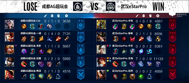 成都AG超玩会禁用: 镜、兰陵王、瑶、孙膑