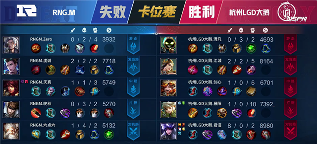 RNG.M选用:鲁班大师、周瑜、狄仁杰、赵云、老夫子