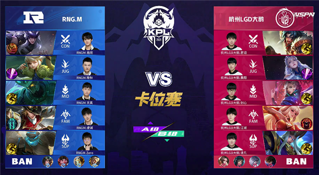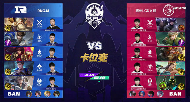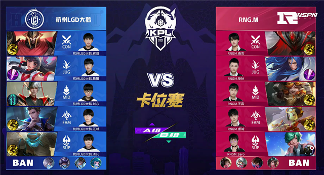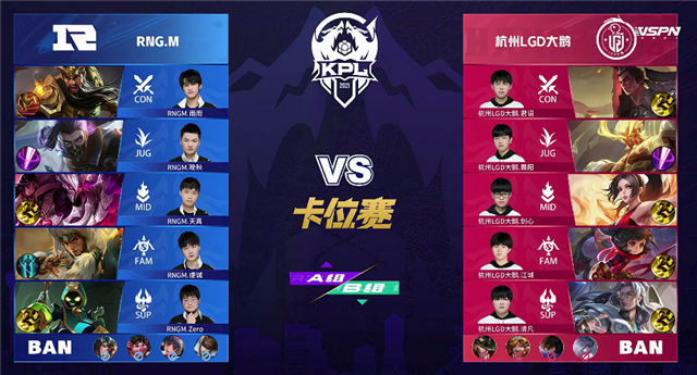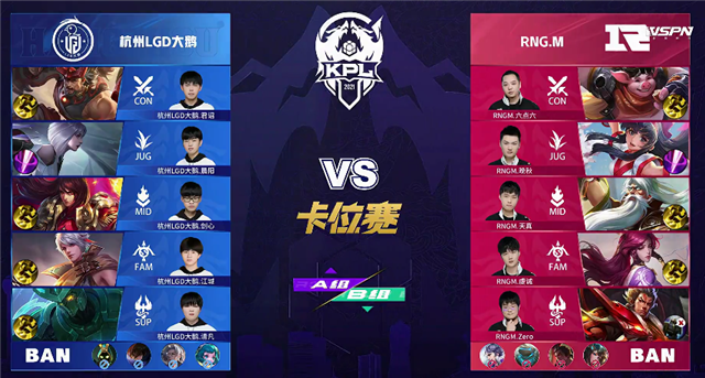 24直播网讯 5月11日2021KPL春季赛常规赛第八周第一日第二场A/B卡位赛,由A组杭州LGD大鹅对阵B组RNG.M,以下是本场比赛快讯。