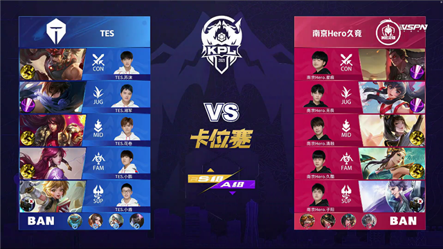 24直播网讯 5月11日2021KPL春季赛常规赛第八周第一日第一场S/A卡位赛,由S组TES对阵A组南京Hero久竞,以下是本场比赛快讯。
