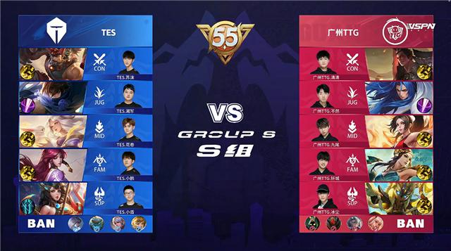 开局广州TTG击杀橘右京拿到一血。2分17秒TES拿下暴君。2分42秒野区团战TES击杀橘右京。4分07秒TES摧毁敌方下路外塔。6分23秒TES摧毁敌方上路二塔。6分35秒上路团战广州TTG打出0换2,TES摧毁敌方上路高地塔。7分07秒广州TTG拿下暴君。8分13秒广州TTG野区击杀澜。8分29秒TES拿下主宰。10分06秒广州TTG中路击杀大乔。11分31秒TES拿下暗影暴君。11分52秒TES摧毁敌方下路二塔。12分09秒下路团战TES打出1换3。12分39秒TES团灭对手摧毁水晶拿下比赛。