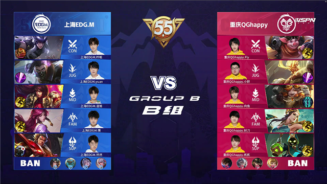 上海EDG.M禁用:大乔 马超 周瑜 盾山