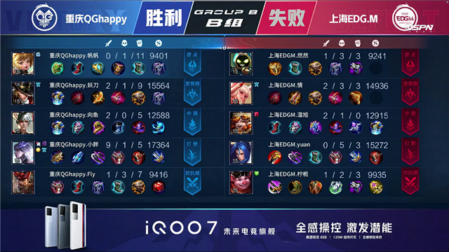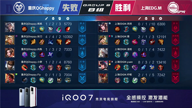 24直播网讯 4月28日2021KPL春季赛常规赛第六周第一日第一场比赛,由B组的重庆QGhappy对阵上海EDG.M,以下是本场比赛快讯。