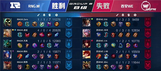 RNG.M选用:澜、猪八戒、西施、狄仁杰、张飞