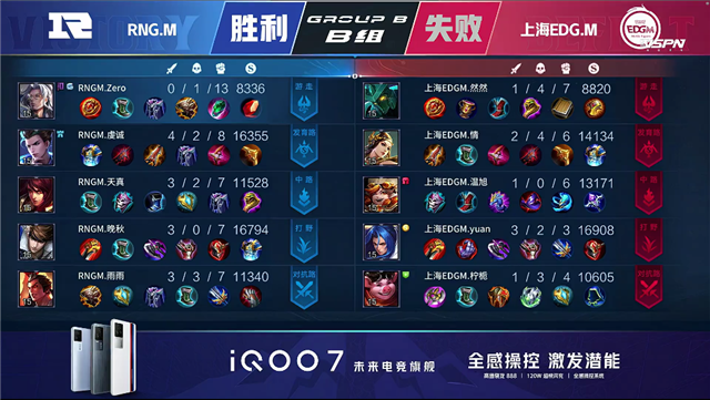 24直播网讯 4月21日2021KPL春季赛常规赛第五周第一日第一场比赛,由B组的RNG.M对阵上海EDG.M,以下是本场比赛快讯。