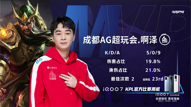 成都AG超玩会选用:关羽 橘右京 张良 狄仁杰 盾山