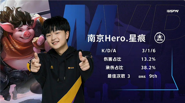 双方平稳开局。2分19秒南京Hero暴君处击杀露娜拿到一血。2分36秒南京Hero暴君处击杀李元芳。3分06秒武汉ES野区击杀西施。6分03秒南京Hero摧毁敌方中路外塔。6分33秒野区团战双方1换1。8分17秒野区团战南京Hero打出0换5,马超拿到二连击破。8分46秒南京Hero摧毁敌方水晶拿下比赛。