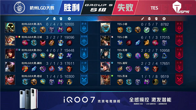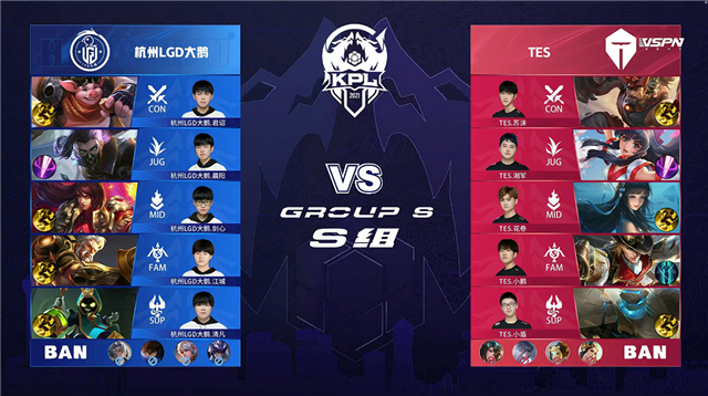 双反个平稳开局,杭州LGD大鹅伽罗换线走中路。1分09秒杭州LGD大鹅拿下中路河道之灵。2分12秒杭州LGD大鹅拿下暴君。3分42秒杭州LGD大鹅拿下主宰。4分44秒TES摧毁敌方下路外塔。6分38秒杭州LGD大鹅拿下暴君。8分43秒杭州LGD大鹅拿下主宰。10分21秒暴君处团战TES打出1换2,杭州LGD大鹅拿下一血,TES孙尚香拿到二连击破。10分49秒TES拿下暗影暴君。11分04秒TES中路击杀伽罗并摧毁中路外塔,11分09秒TES上路击杀元歌,马超拿到二连击破。12分26秒TES摧毁敌方下路二塔。12分52秒杭州LGD大鹅中路打出0换2。13分17秒杭州LGD大鹅拿下暗影主宰。15分26秒杭州LGD大鹅拿下暗影暴君并击杀孙尚香。16分03秒杭州LGD大鹅摧毁敌方中路外塔。16分48秒杭州LGD大鹅摧毁敌方上路外塔。18分17秒杭州LGD大鹅拿下暗影主宰。18分58秒TES野区击杀露娜。20分57秒野区团战TES打出0换4。21分32秒TES团灭对手摧毁敌方水晶拿下比赛。