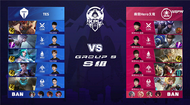 2分23秒,TES拿下暴君。6分05秒,南京Hero廉颇击杀姜子牙拿下一血。6分28秒,南京Hero破掉TES上一塔。7分08秒,下河道团,TES打出1换2。8分48秒,中路团,南京Hero打出0换2并破掉TES中一塔。10分23秒,TES拿下暗影暴君,随后团战南京Hero打出0换4。11分06秒,南京Hero破掉TES中二塔。11分32秒,南京Hero拿下暗影主宰。11分59秒,河道团,双方1换1。12分56秒,南京Hero包抄击杀娜可露露。14分39秒,南京Hero拿下暗影暴君。16分23秒,中路团,TES击杀鲁班七号。17分28秒,TES拿下暗影主宰,但南京Hero击杀猪八戒。19分05秒,暗影暴君团,双方1换1。20分24秒,风暴龙王团,TES打出0换2,随后TES控下风暴龙王。21分50秒,TES下路击杀廉颇。25分41秒,南京Hero河道击杀后羿。26分20秒,南京Hero拿下风暴龙王。27分11秒,南京Hero破掉TES中高地。28分23秒,南京Hero破掉TES下高地。28分36秒,下路团,双方最终1换1。30分30秒,双方团,南京Hero打出0换3。30分58秒,南京Hero破掉TES水晶扳回一城。