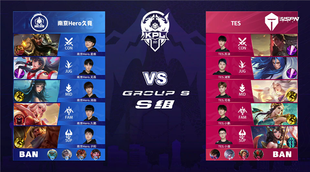 2分16秒,南京Hero拿下暴君。4分40秒,下路团,双方2换2,马可波罗拿下双杀。5分10秒,南京Hero破掉TES下一塔。7分07秒,南京Hero破掉TES中一塔。7分44秒,中路团,南京Hero击杀马可波罗。8分11秒,南京Hero破掉TES下二塔。9分48秒,TES拿下先知主宰。10分47秒,TES抢下暗影暴君,随后团战TES打出1换4,不知火舞与马可波罗拿下双杀。11分27秒,TES下路击杀墨子团灭对手,随后破掉南京Hero中路高地。12分28秒,TES不知火舞击杀澜,随后控下暗影主宰。15分09秒,TES拿下暗影暴君。16分12秒,TES破掉南京Hero上高地。16分35秒,南京Hero击杀盘古。17分20秒,南京Hero墨子击杀不知火舞。17分50秒,南京Hero拿下暗影主宰。19分27秒,南京Hero澜击杀太乙真人。19分58秒,TES中路反打打出1换4。20分35秒,TES破掉南京Hero水晶拿下胜利。