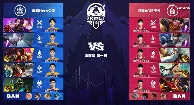 24直播网 3月13日2021KPL春季赛季前赛第一周第三日比赛,由成都AG超玩会对阵南京Hero久竞,以下是本场比赛快讯。