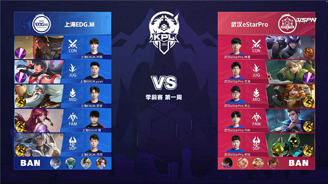 24直播网 3月12日2021KPL春季赛季前赛第一周第二日比赛,由武汉eStarPro对阵上海EDG.M,以下是本场比赛快讯。