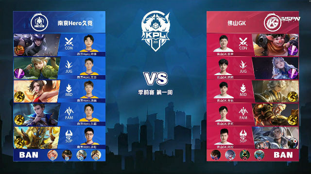 24直播网 3月11日2021KPL春季赛季前赛第一周第一日比赛,由南京Hero久竞对阵佛山GK,以下是本场比赛快讯。