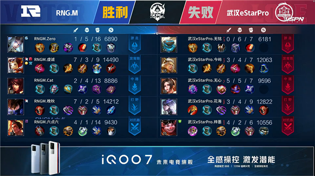 RNG.M选用:澜、吕布、鲁班七号、周瑜、东皇太一