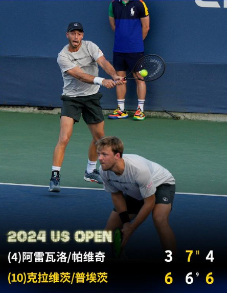 2024美网男双半决赛 阿雷瓦洛/帕维奇vs克拉维茨/皮茨 全场录像回放