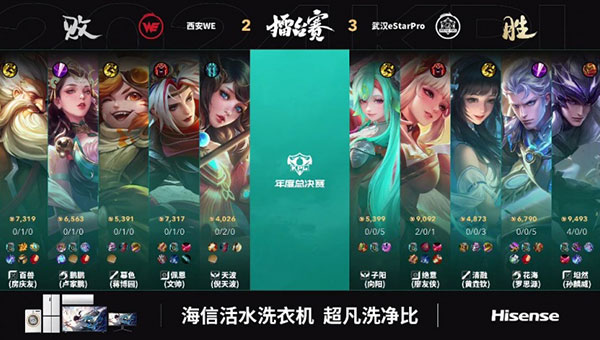 第三局,eStar在上路的关键团战中打出零换四的精彩操作,打开了局面。WE在拆火方面做得欠佳,eStar趁机迅速推进,一路平推取得胜利。花海再次凭借大司命的出色发挥,荣获本局MVP。