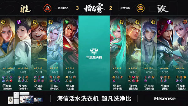 第五局,WB前排不够抗揍,后羿的输出环境一般。WB很难打动KSG的双前排,KSG则在野区不断滚经济,后期经济差越来越大。最终,苏州KSG拿下这一局的胜利。本局MVP为今屿的元流之子。